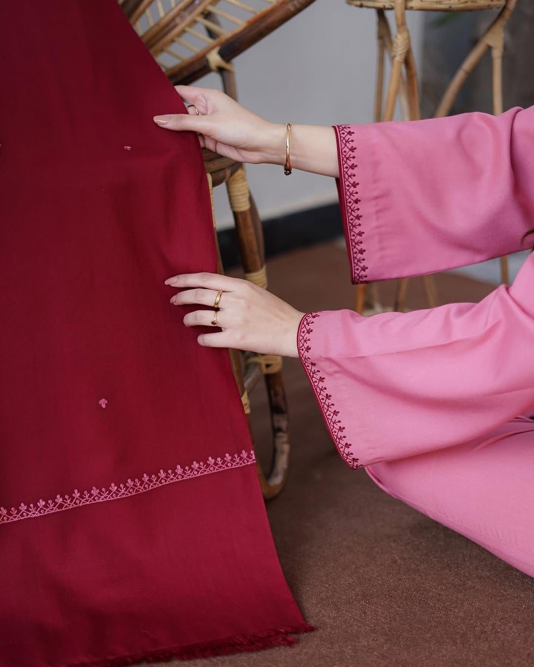 Embrace the cooler seasons in sophisticated style with our luxurious 3-Piece Embroidered Dhanak Unstitched Suit. Featuring the premium, soft Dhanak fabric, this suit offers exceptional warmth and a comfortable drape, making it the perfect canvas for your next custom look. The set includes a generous length of fabric for the kameez, beautifully adorned with exquisite embroidery work along the neckline and sleeves for an elegant finish. This is perfectly complemented by a warm, embroidered Dhanak shawl (dupatta) and a matching dyed trouser fabric, providing a complete ensemble ready to be tailored to your precise measurements and desired silhouette. Elevate your winter wardrobe with this stunning, high-quality fabric that combines tradition with contemporary comfort.