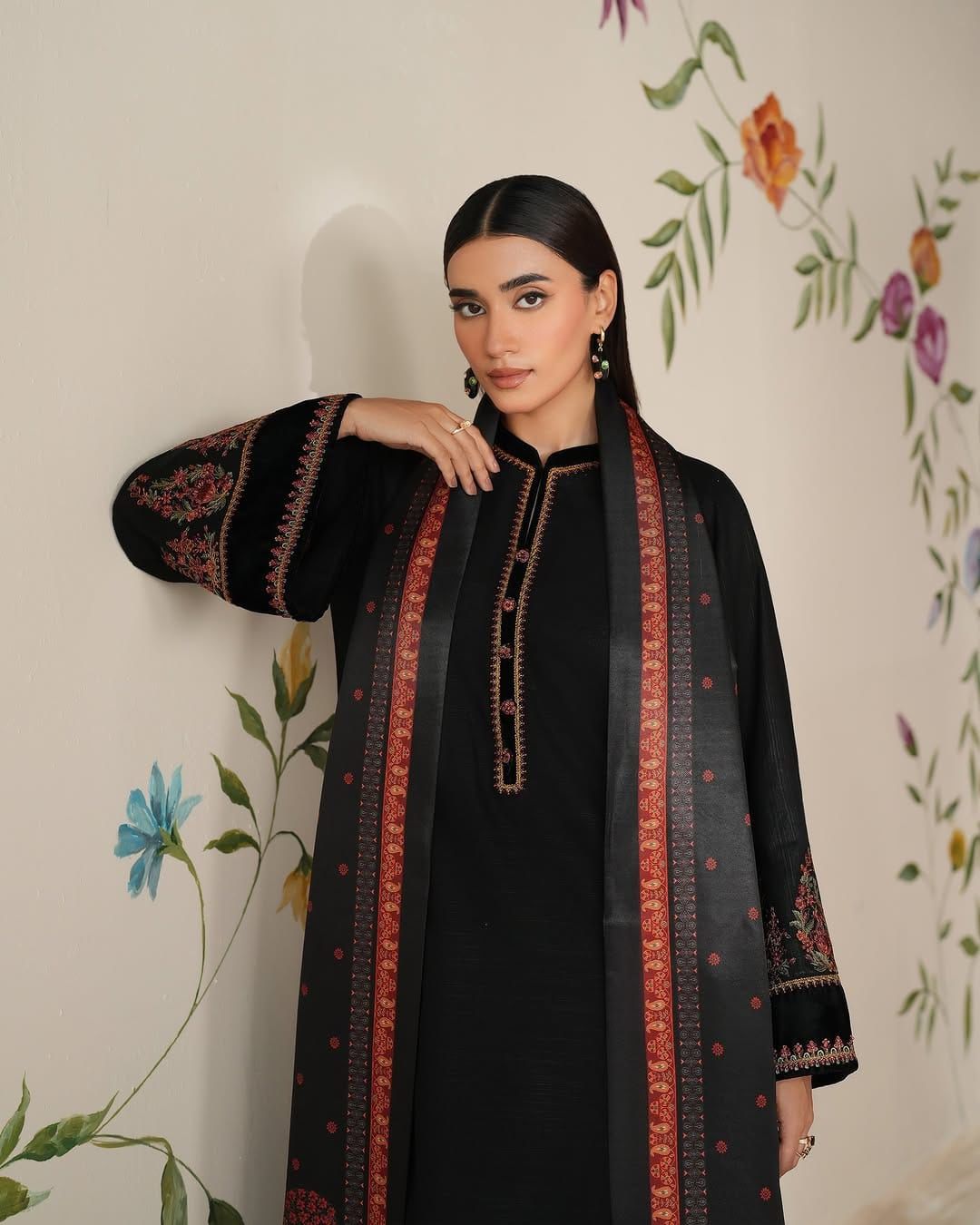 FRONT PLAIN NECK EMB PATCH BACK PLAIN SLEEVES HEAVY EMBROIDED TROUSER PLAIN SHAWL DIGITAL PRINTED SOFT PASHMINA WOOL SHAWL